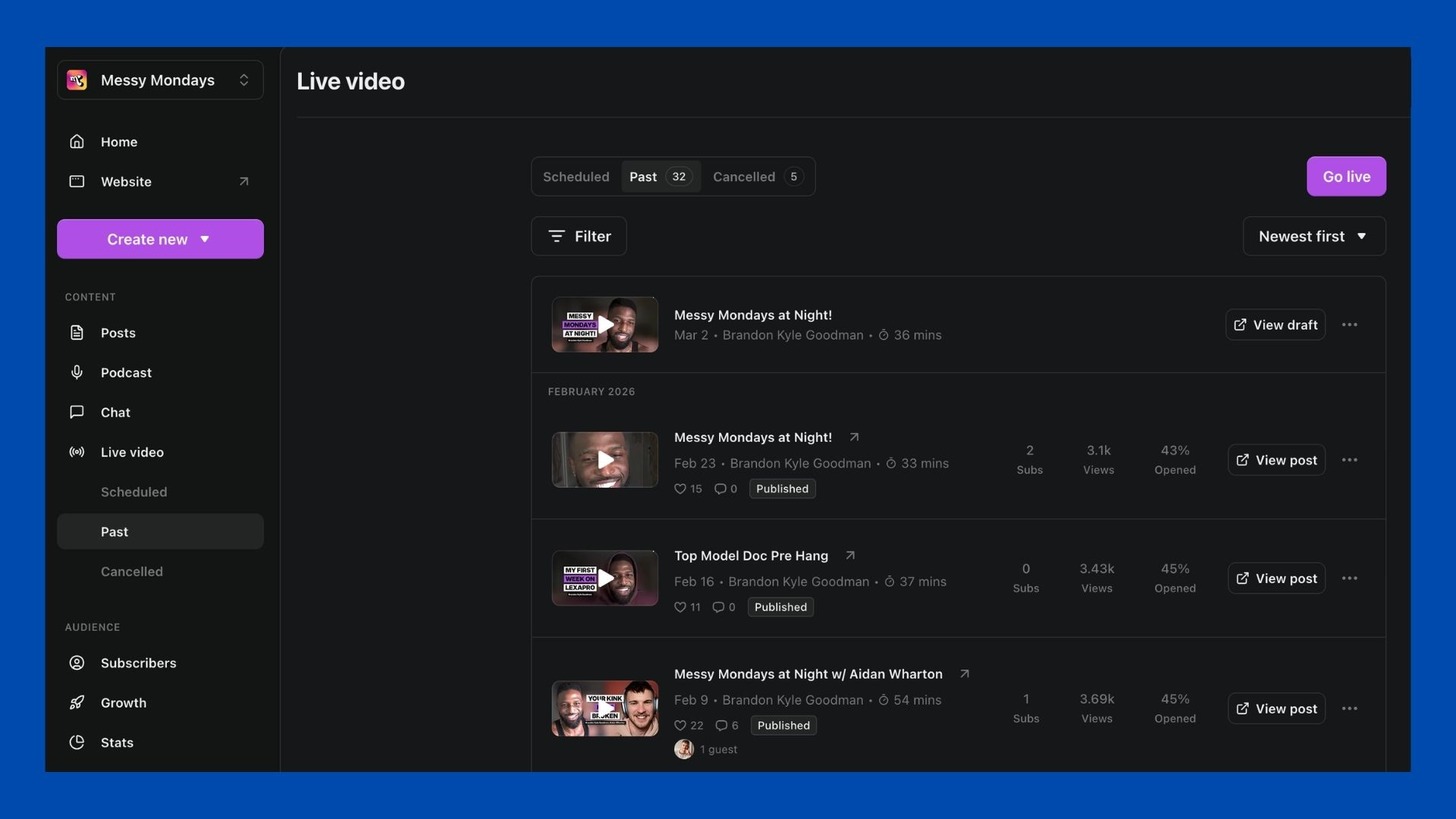 This gives you a clearer overview of your live video workflow and reduces the need to jump between different tools to manage upcoming or past broadcasts.