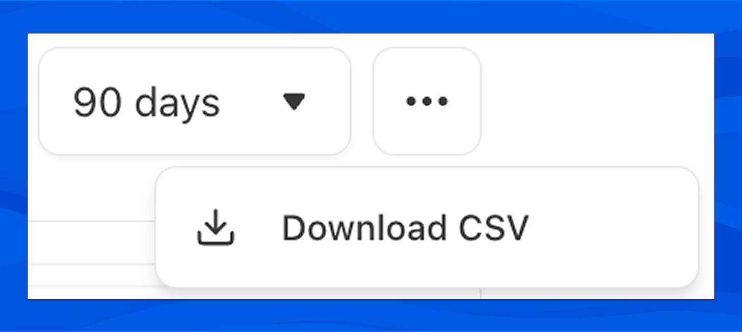 To export, select the time range you’d like to analyze in your publication dashboard, then click “Download CSV” from the menu.