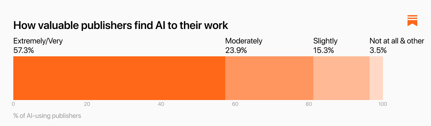 But on a personal basis, publishers who use AI overwhelmingly said that it adds value to their work.